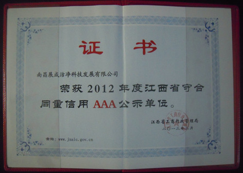 依照《江西省守合同重信用認定管理暫行辦法》,日前,江西省工商行政管理局對全省企業(yè)開展調查、評選,結合各企業(yè)納稅、信貸、環(huán)境保護、安全生產、勞動用工、民工工資發(fā)放、訴訟等方面的情況,并分別征求稅務、銀行等有關單位的意見,認定南昌展成為2012年“江西省守合同重信用AAA單位”。這也是繼入選2010年“南昌市守合同重信用企業(yè)”后,南昌展成在“守合同重信用”領域獲得的又一項榮譽。